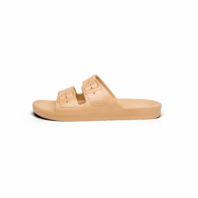 Basic Slides i Camel har en lun, gyllen farge inspirert av sol og ørkenlandskap. For å fremheve denne naturlige tonen, kombiner den med himmelblå og grønn, men Camel er også nydelig til hvit og sort for en tidløs look.