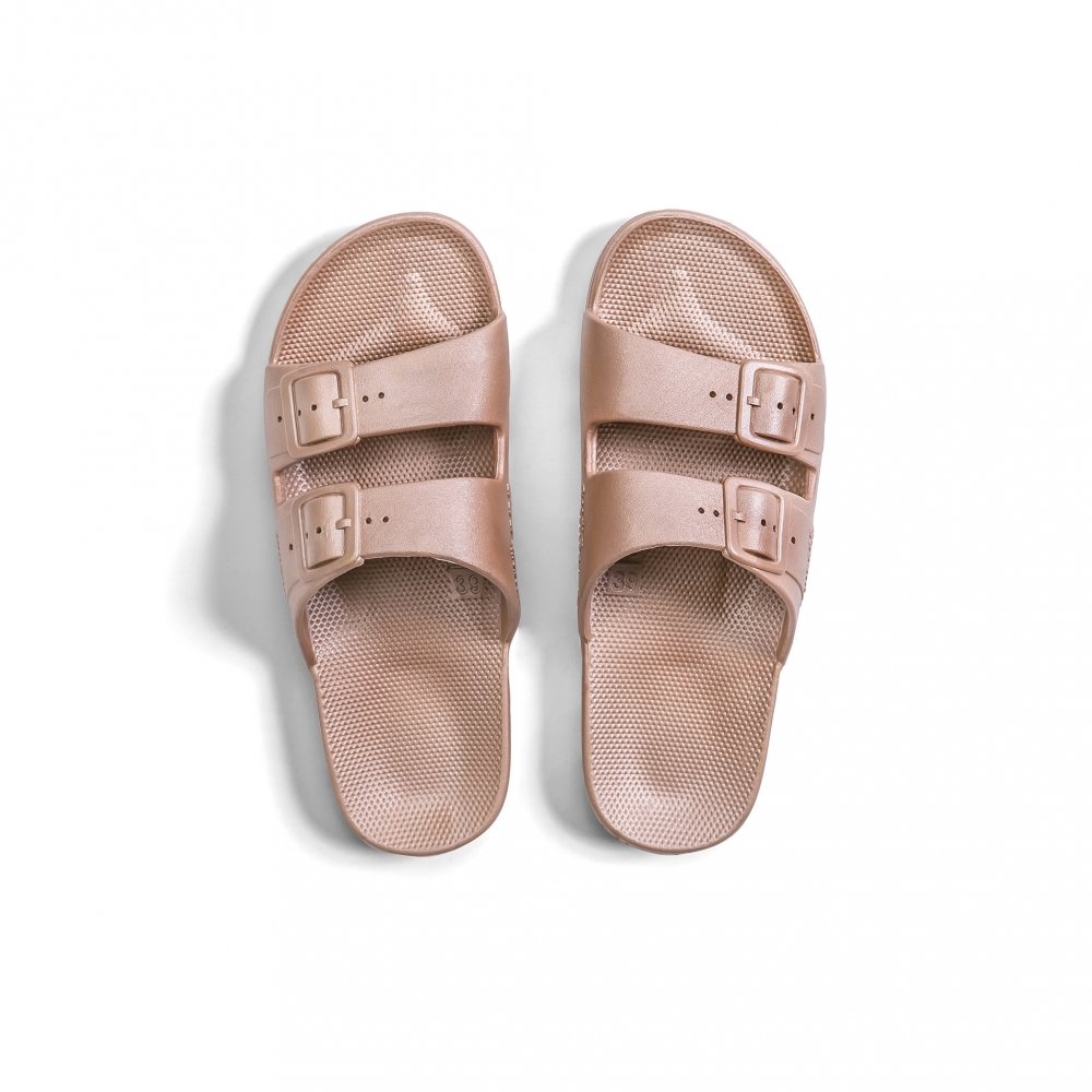 Sandalene er laget av elastisk og bærekraftig PVC og har et klassisk design med pyntespenner på reimene. Sålen er ergonomisk og har et rutenett som gjør at du ikke glir- selv når du bader med de. Materialet er injisert med luft og syntetiske oljer med en nydelig duft av melk og honning. De er vannfaste og slitesterke - laget for å vare år etter år! Disse kan du bruke inne og ute; i hverdagen, på sommerfesten, beachen og på jobb. All day long, all year long!