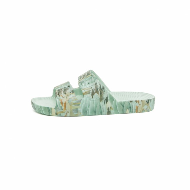 Sandalene er laget av elastisk og bærekraftig PVC og har et klassisk design med pyntespenner på reimene. Sålen er ergonomisk og har et rutenett som gjør at du ikke glir- selv når du bader med de. Materialet er injisert med luft og syntetiske oljer med en nydelig duft av melk og honning. De er vannfaste og slitesterke - laget for å vare år etter år! Disse kan du bruke inne og ute; i hverdagen, på sommerfesten, beachen og på jobb. All day long, all year long!