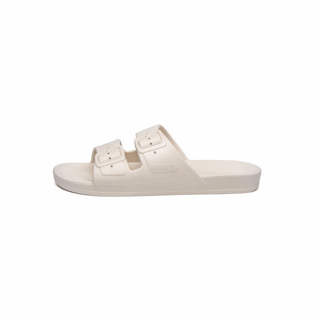 Sandalene er laget av elastisk og bærekraftig PVC og har et klassisk design med pyntespenner på reimene. Sålen er ergonomisk og har et rutenett som gjør at du ikke glir- selv når du bader med de. Materialet er injisert med luft og syntetiske oljer med en nydelig duft av melk og honning. De er vannfaste og slitesterke - laget for å vare år etter år! Disse kan du bruke inne og ute; i hverdagen, på sommerfesten, beachen og på jobb. All day long, all year long!