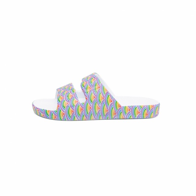 Sun Multi tar oss med inn i regnbuens magiske farger – rød, oransje, gul, grønn, lyseblå, mørkeblå og fiolett. Regnbuer er naturens vakreste lysshow, så hvorfor ikke la dem skinne på føttene dine? Et fargerikt eventyr for stilen din!